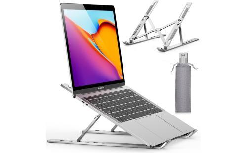 この人間工学設計の折りたたみ式ノートパソコンスタンドは、無段階高さ・角度調整が可能で、腰痛や肩こりの軽減に効果的です。