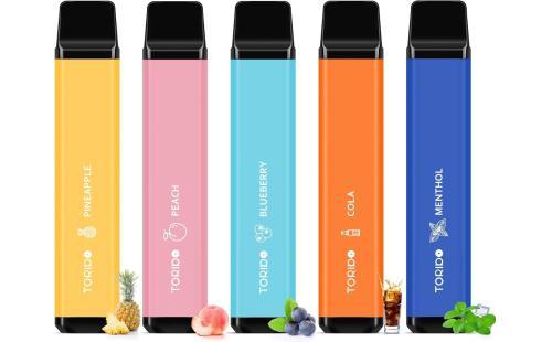 TORIDO O2Plus型は、5本の使い捨て電子タバコで総計12500回吸引可能。手軽さと豊富なフレーバーが魅力。
