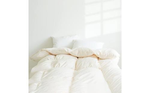 リ・ニューダウン85%の羽毛を使用しており、環境にも配慮した商品だと知ったあやめさんは、即座に購入を決定します。クリーミーホワイトの無地のデザインは、お気に入りの掛けふとんカバーとも相性が良さそうです。