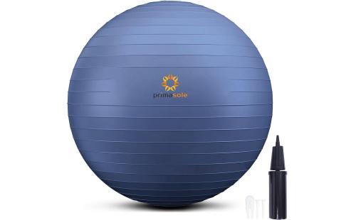 プリマソーレ(Primasole)のフィットネスボールは、インディゴブルーの美しい色合いと抗菌仕様が特徴。トレーニングに最適で、空気入れも付属。