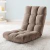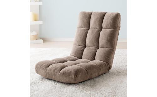 もこもこキルティングのポリエステル100%の張地と14段階のリクライニング機能を備えた座椅子。身体を包み込む3層構造と肌触りの良いマイヤー生地が特徴。