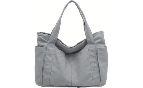 [pieka] トートバッグ 大きめ 帆布 キャンバス 軽量 ポケット付き シンプル Lサイズ(グレー) : ファッション