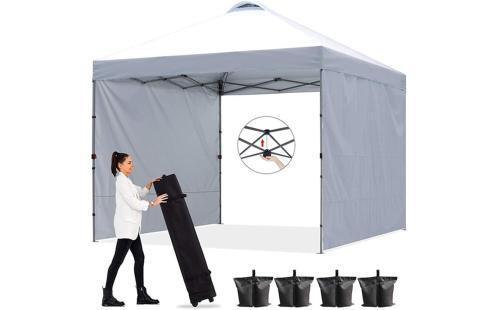 Amazon | ToopTapu タープテント ワンタッチタープ サイドシート2枚付き センターロック 3m/2.5m 3段階調節 キャスターバッグ付き 8人用大型 組立簡単 付属品付き (ホワイト, 3m) | Toop Tapu | タープ