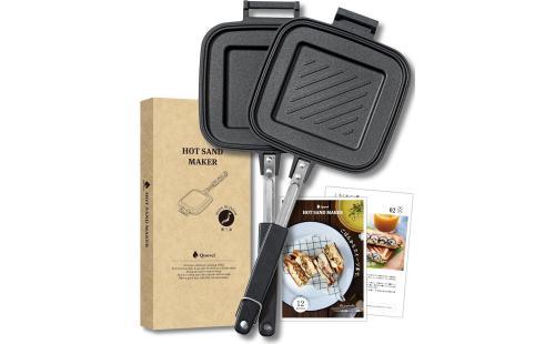 Amazon|【燕三条】日本製 Qoovel ホットサンドメーカー 直火 耳圧着 (レシピ集付) 片面フラット 耳まで焼ける 上下分離型 キャンプ|直火式ホットサンド・ワッフルメーカー オンライン通販