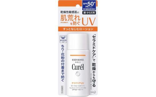 「キュレル UVカット デイバリアUVローション」は、乾燥性敏感肌向けの日焼け止めです。肌荒れを防ぎながら、透明になじむテクスチャーが特徴です。