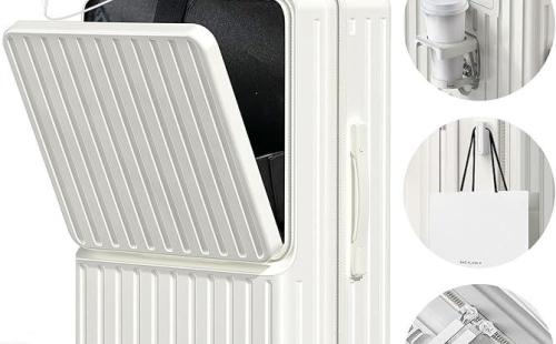 BARGOCHのスーツケースは、前開きデザインで荷物の出し入れがスムーズ。USB充電ポートや折りたたみ式カップホルダーも便利。