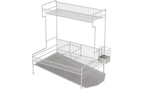 使いやすさ: この水切りラックは2段式で収納力が抜群であり、耐荷重も30kgと非常に頑丈です。また、流れるトレーが付いているため水捨てが不要で、お手入れも簡単です。