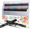 Ohuhu 水彩毛筆48色 水ペン2本 水彩ペン 筆ペン カラー セット 水彩筆 水性 水彩画 レタリング 透明 学習教材 画材 収納ケース付き : 文房具・オフィス用品