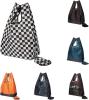 このエコバッグは折りたたんで底に縫い付けた収納袋に入れることができ、コンパクトサイズになります。たたむ際も簡単にくしゅくしゅと収納できるので、手間をかけずに収納することができます。