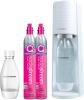 ソーダストリーム TERRA(テラ)スターターキットは、自宅で簡単に炭酸水を作れる便利なアイテムです。このスターターキットには、マシン本体、60Lガスシリンダー2本(特典で1本増量)、1.0Lボトル1本、0.5Lボトル1本が含まれています。これにより、購入後すぐに炭酸水を楽しむことができます。