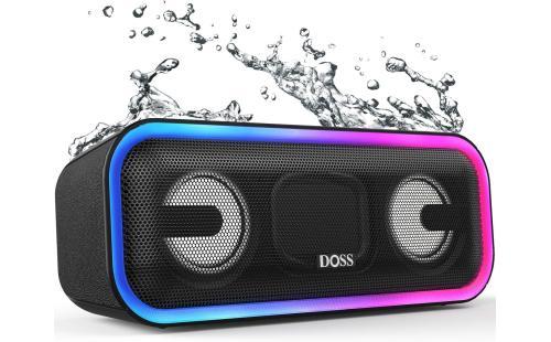 DOSS SoundBox Pro+ Bluetoothスピーカー 24W 重低音 ワイヤレス ポータブル 小型 ブルートゥース スピーカー【15時間再生/ワイヤレスステレオ対応/ライティング機能/IPX6 防水/マイク内蔵/Aux-in/TFカード対応/お風呂 アオトドア適用】(ブラック) : 家電&カメラ