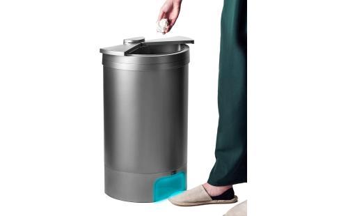 DiETZのDustBox30は、足センサーによる自動開閉機能を備えた30Lの大容量ゴミ箱。スライド式で省スペース設計、スタイリッシュなシルバーグレーのデザイン。