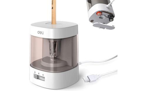Deli 電動鉛筆削り 電動シャープナー 入学準備 6-8mm鉛筆 乾電池/USB電源供給 充電不可 デッサン鉛筆 小学生 色鉛筆 デッサン 美術 (ホワイト) : 文房具・オフィス用品