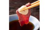 馬刺し専用の醤油やしょうが、にんにくが付いているとのことですが、それらの味付けは馬肉の風味を引き立てる一方で、アクセントを加えてくれます。馬刺しの風味を引き締めるしょうがとにんにくの風味が、馬肉の旨みと相性抜群です。