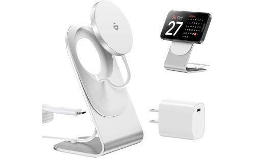 ワイヤレス充電器 マグネット式 Mag-Safe充電器は、iPhone 15/14/13/12シリーズに対応した便利な充電器です。この製品には、ワイヤレス充電スタンドと20W USB-Cアダプターが付属しており、効率的な充電が可能です。USB-Cケーブルもセットになっているため、すぐに使用できます。スタンドやパッドにiPhoneを置くだけで充電が始まり、ワイヤレスイヤホンにも対応しています。