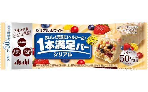 アサヒグループ食品の1本満足バー シリアルホワイトは、軽食やおやつに最適で、手軽に栄養補給ができる。美味しい味わいと満腹感を提供。
