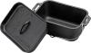 この角型の鉄鋳物ダッチオーブンは、オーブン料理、煮物、蒸し料理、炊き込みご飯、蓋を使って焼く料理、スモーク料理など、様々な調理に最適です。鉄鋳物の特性を活かした料理を楽しむことができます。