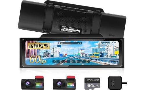 PORMIDO【前後カメラとも60FPS高輝度ソニー製IMX462センサーを採用】ドライブレコーダー ミラー型 前後カメラ【爆光デジタルインナーミラー:晴天でも見やすい+ダークスモーク車でも夜に見える】【リアカメラズーム機能+上部コネクタ隠し+1本TYPEC中継線集約設計】広視野画角 HDR/WDR/3軸Gセンサー/駐車監視/GPS搭載 LED信号機対応 地デジTV対策【PRD6XC】 : 車&バイク