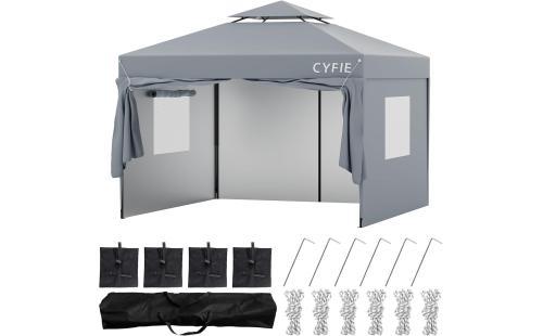 CYFIEタープテントは、高さ調整可能な3m×3mサイズのタープテント。UVカットや高耐水加工、付属のサイドシートで様々なシーンで活躍します。持ち運びも簡単な収納ケース付きです。