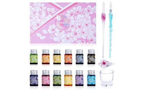 【COCOUNITY】ガラスペン ガラスペンセットは、日本発祥のガラスペンを使用しており、美文字アドバイザー監修の美文字帳が付属しています。12色のインク、メッセージカードなど、充実した内容で美しい手紙や文字を書くことができるセットです。