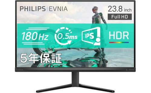 PHILIPS EVNIA ゲーミングモニターは、23.8インチのサイズで180Hzの高リフレッシュレート、フルHDの高解像度、Fast IPSパネル、0.5msの超高速応答時間、HDR10対応、Adaptive Sync機能など、ゲームプレイに最適な仕様が詰まっています。このモニターは、ゲームプレイ時にスムーズな映像と快適なプレイ体験を提供します。