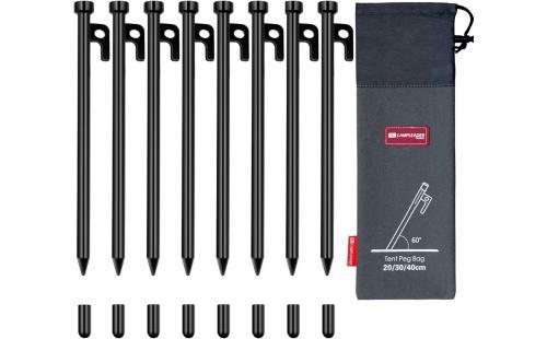 鍛造ペグ 30cm 8本 キャンプ ペグ テント ペグ ソリッドステーク S45Cスチールペグ 電着塗装 収納袋&キャップ付き 砂利 硬い土 砂浜等対応 : スポーツ&アウトドア